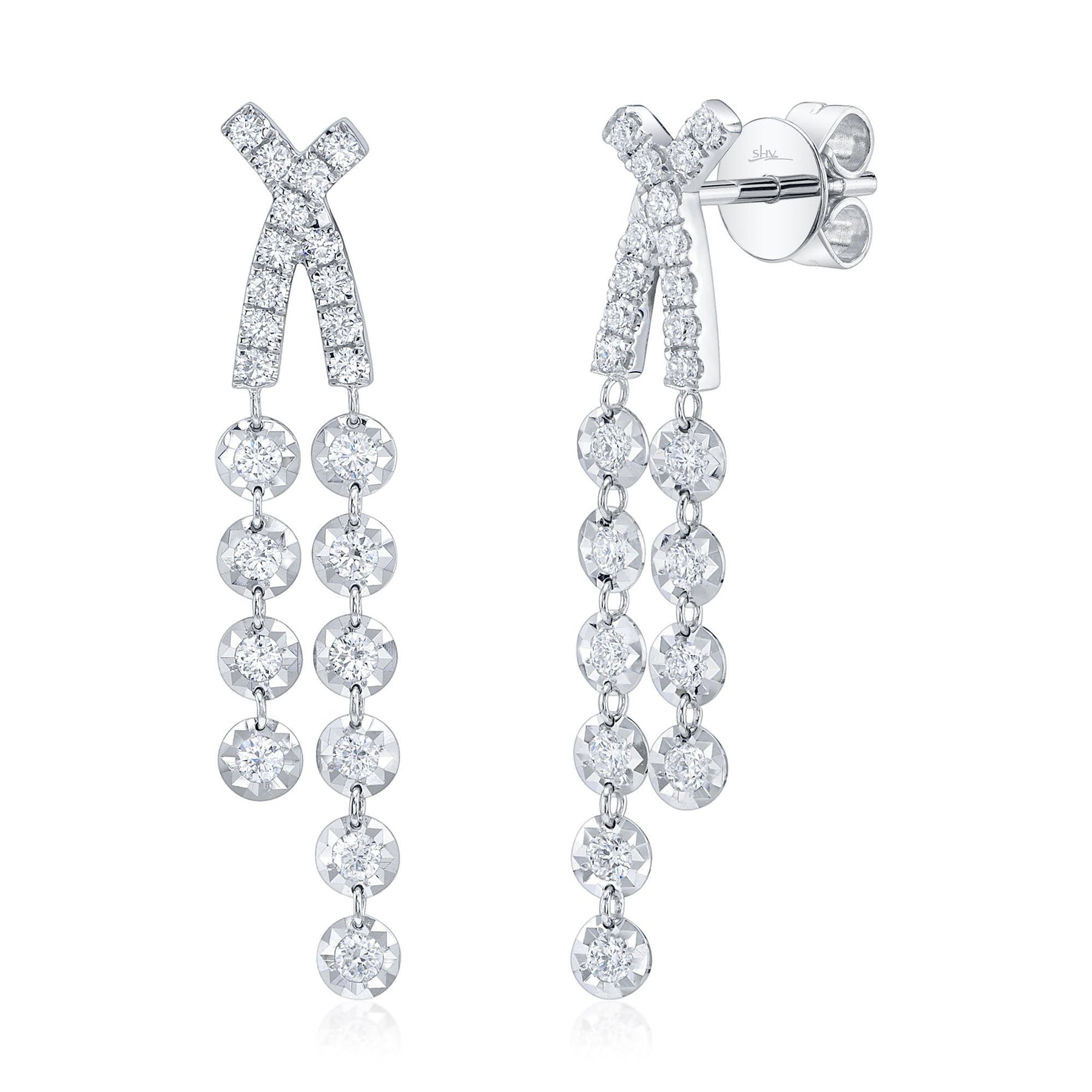 14K White Gold Shy Creation Diamond Dangle Earrings, 46 RD 0.59ct G/H SI